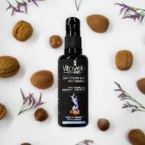 Suchen Sie nach einer perfekten Tagescreme, die Ihre Haut erneuert und Ihnen ein makelloses Aussehen verleiht? Dann sind Sie bei Vitavelle Cosmetics' Tagescreme mit Niacinamid genau richtig! Unsere Tagescreme wurde speziell entwickelt, um Ihnen eine jugendlicher aussehende, strahlende Haut zu verleihen. Mit einer Kombination aus pflegenden Inhaltsstoffen wie Niacinamid, Hyaluronsäure und Bakuchiol hilft diese Creme, das Erscheinungsbild von feinen Linien, Falten und anderen Anzeichen von Hautalterung zu reduzieren und gleichzeitig die Haut zu hydratisieren und mit Feuchtigkeit zu versorgen.